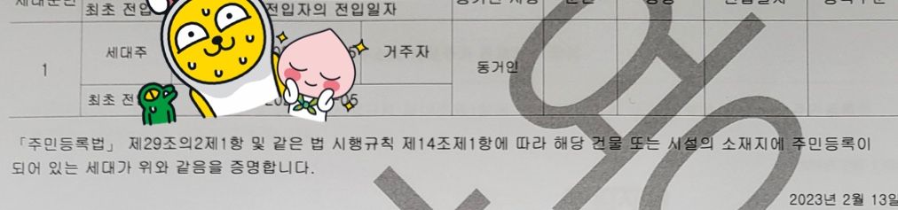 그런데 전입세대 열람원에 집주인 이름이 올라가 있고, 거주자, 동거인, 세대주 표시가 되어 있어요.