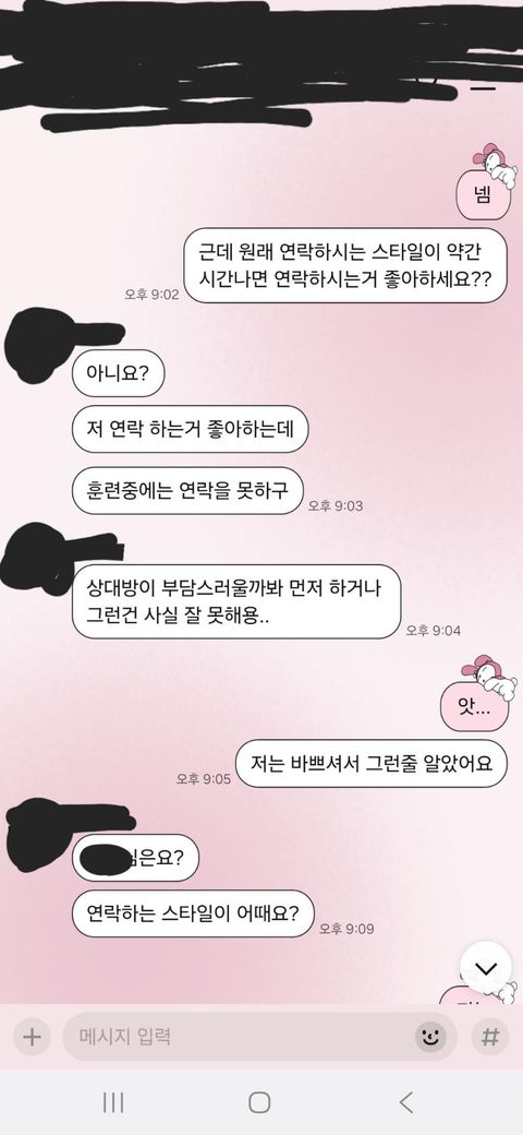 위 메세지 내용에 의하면 훈련 중이고 상대방이 부담스러워 할까봐 연락을 안한다고 하는군요.