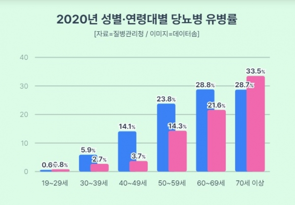 연령이 증가함에 따라 당뇨가 많이 발생하기 때문에 정기적으로 확인을 하시면 됩니다