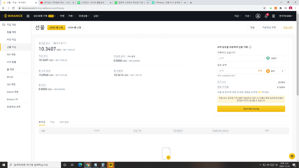 바이낸스 거래소 교차담보에 대해서 질문입니다