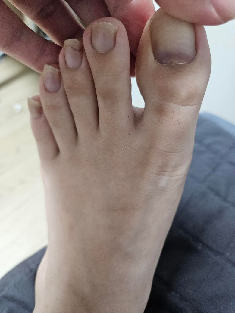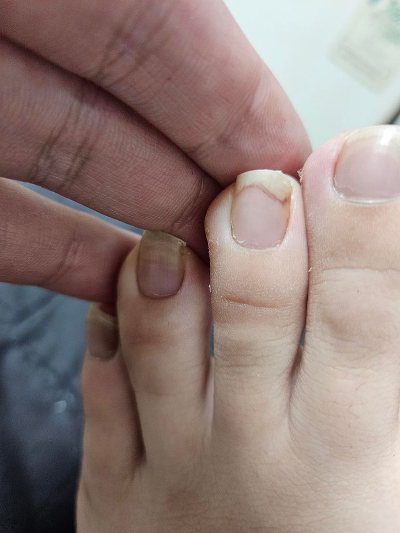 엄지발가락이랑 중지발가락에 이상한색같은걸 봤는데 이게 뭘까요..