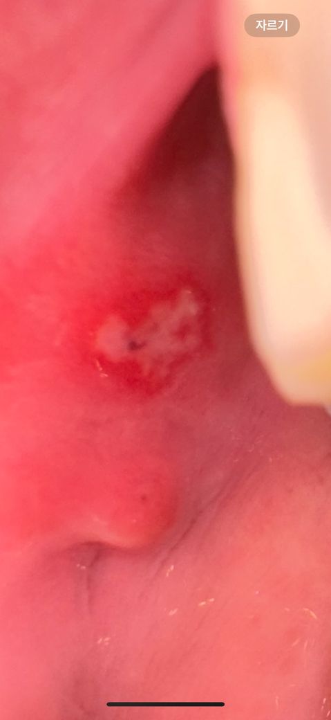 딱 구내염 난쪽 오른쪽 턱아래 침샘? 림프도 부었는지