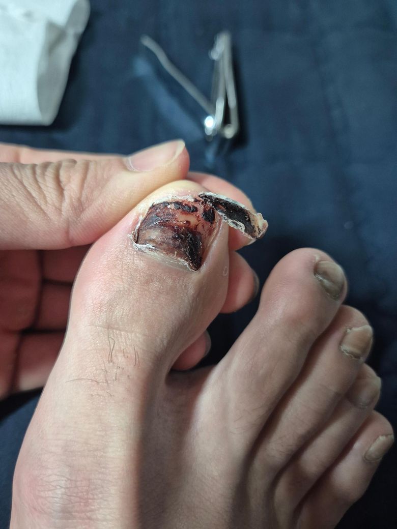 우선 현재로썬 발톱이 들린 상태에서 제거를 하셨기에 더 이상 건들지 마시고 소독을 하면서 최대한 보호 해주시길 바랍니다.