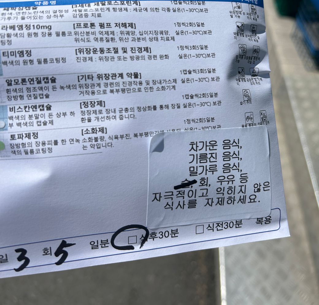금요일에 급성장염 진단을 받고 사진과 같은 약을 먹고 있습니다.설사,구토와 같은 증상은 없는데 약만 먹으면 속이 너무 울렁거리고 괴롭습니다 토는 나오지도 않고 울렁거리니 더 힘듭니다 약을 잠깐 중단하면 안 될까요? 진짜 죽을 것 같아요 제발 살려주세요