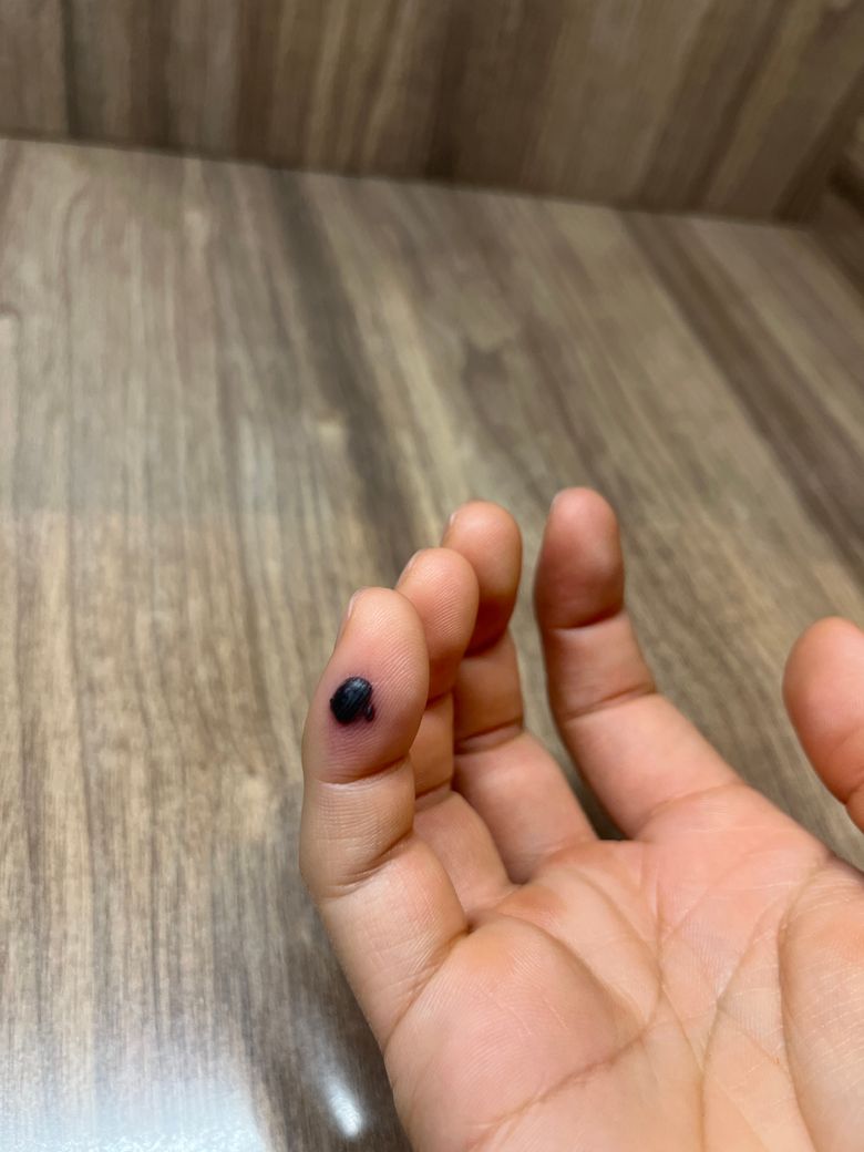 안녕하세요, 어제 저녁 8시쯤에 헬스 중 덤벨을 내려놓다가 실수로 새끼손가락에 찧어버려서 사진과 같이 피가 고인상태로 약간 부풀어 올랐습니다. 당시에는 몰랐는데 나중에 보니까 검은색으로 피가 뭉쳐있더라구요. 통증은 크게 없고, 만지면 열 과 붓기가 약간 느껴지는 정도입니다.