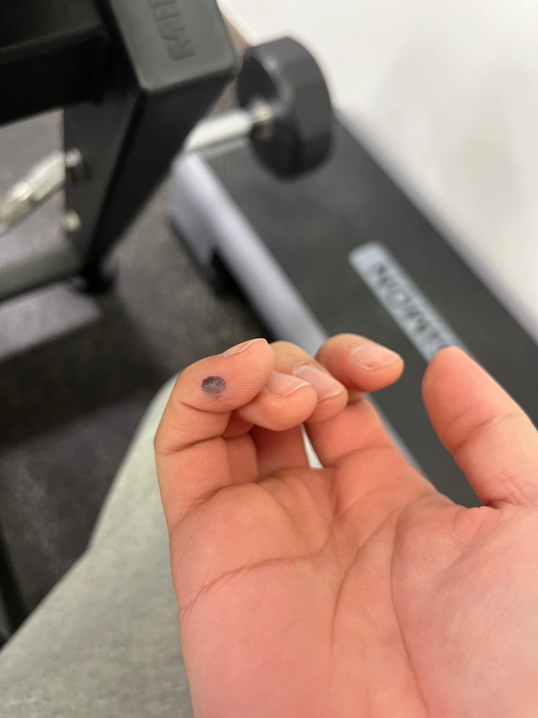 헬스하다가 새끼손가락이 찧여서 피가 고인 상태인데, 어떻게 해야할까요?
