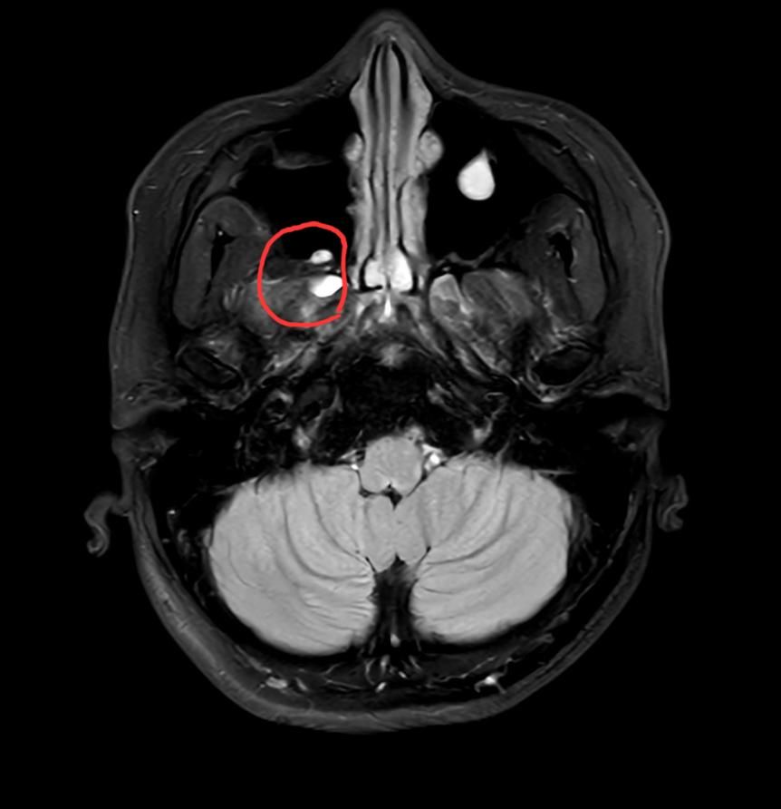 한쪽 부비동에 혹부리처럼 물혹이 있는 것은 알고 있었는데 빨간 동그라미 친 부분의 흰색(or덩어리)는 무엇인지 알 수 있을까요?! 처음 보아서 궁금해서요.