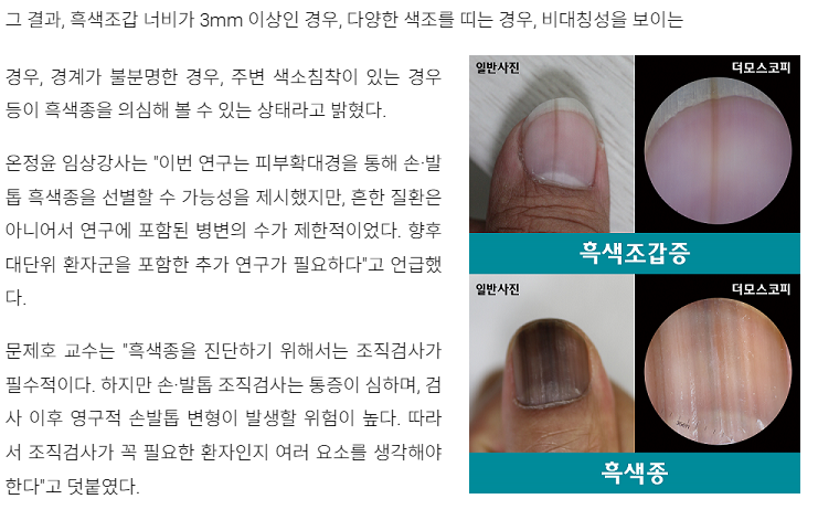 흑색조갑증의 경우 폭이 더 좁습니다