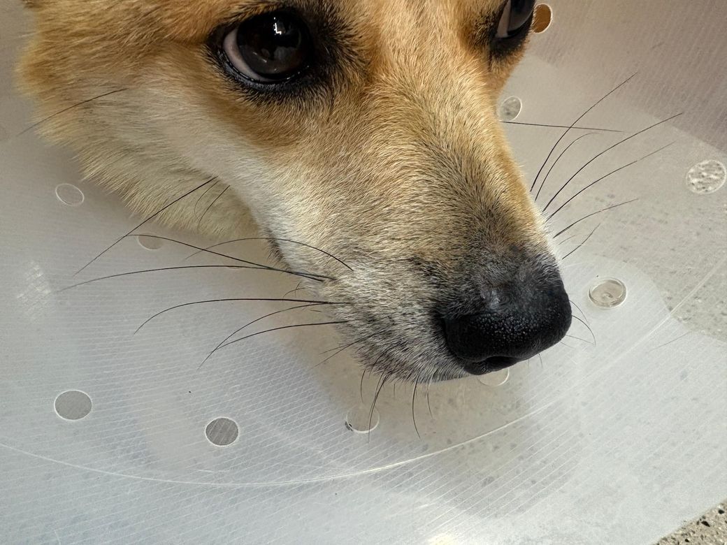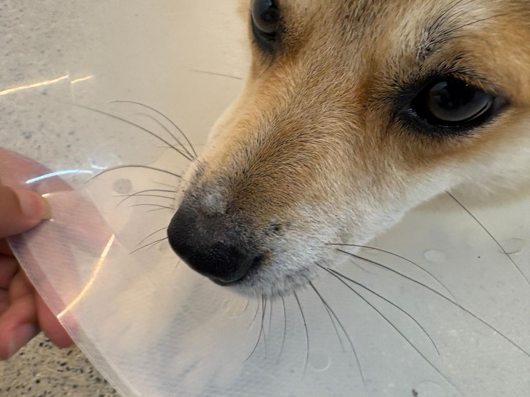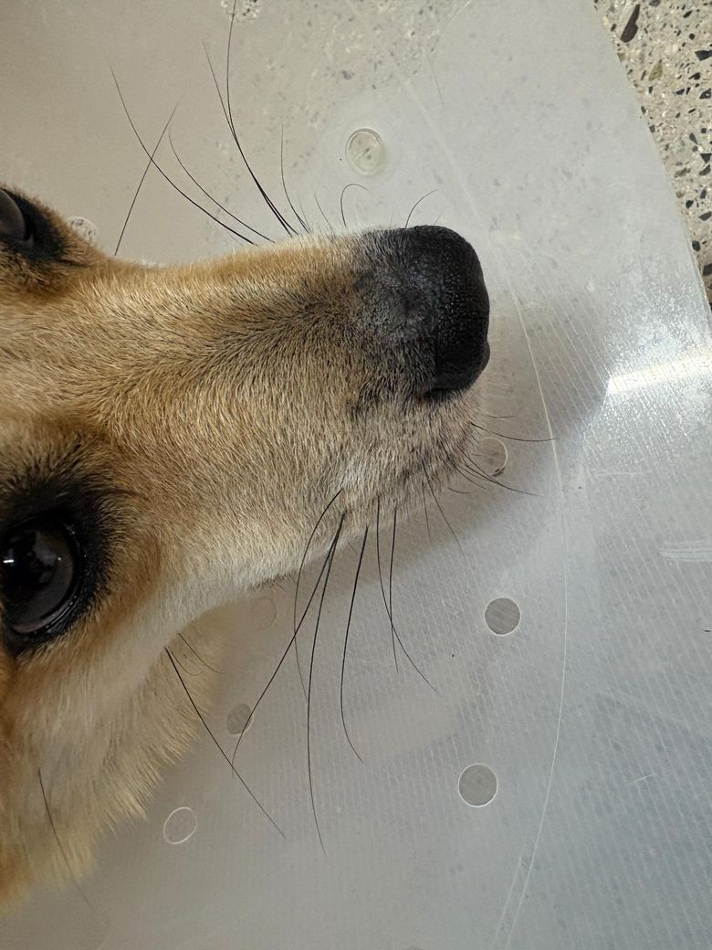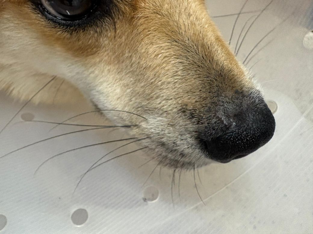 오늘 보니까 강아지 코가 이상해요 어디 까진 것 같기도 하고 불에 그을린 것 같기도 합니다. 전문가분들이 보실 땐 어떠신가요? 참고로 며칠 전에 중성화 수술을 했습니다.