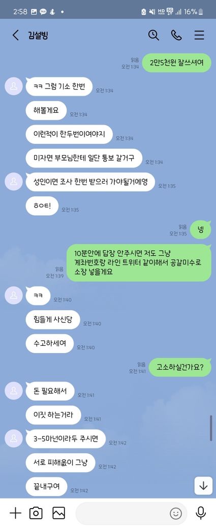 무서웠던 저는 3만원, 2만원, 3만원 등 총 10만원이 넘는 금액을 입금하였습니다.