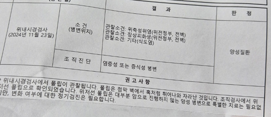 이번에 검진통해서 소견을 받았습니다.