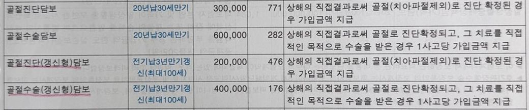 골절진단담보와 골절진단(갱신형)담보가 있는데.. 두개의 차이점은 알겠는데 중복으로 청구 가는한 부분일까요?