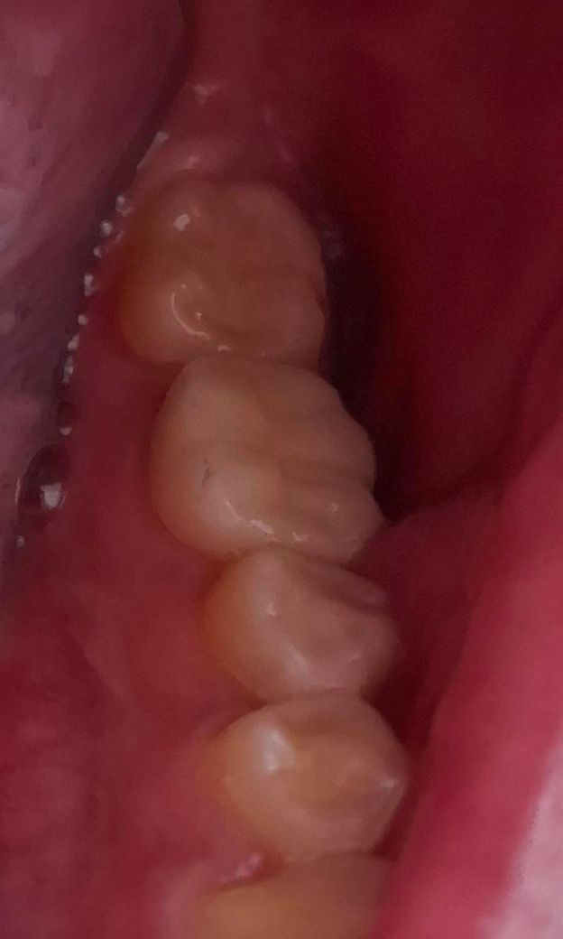 이게 오늘 보니까 어금니 크라운 씌운쪽에 사진처럼 살짝 금간거처럼 보이거든요..? 설마 충치인가요??