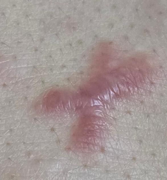 어느날 여드름 처럼 불룩 올라와서 고름을 짲습니다. 그런데 상처가 아물면서 그려워 조금 긁었는데 아문 후 이렇게 볼록 올라왔어요.