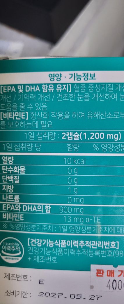 산패인증 받은 제품이고 kd파마 산패방지 캡슐 사용한걸로알고있어요