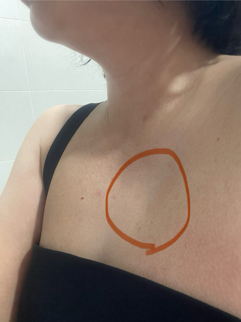 제가 라운더 솔더에 원래도 흉선쪽 부분이 좀 들어가 있는것 같았는데. 저번 화요일부터 코로나에 걸렸구요. 목요일밤에 샤워 하는데 흉선쪽 부분 살? 근육? 이