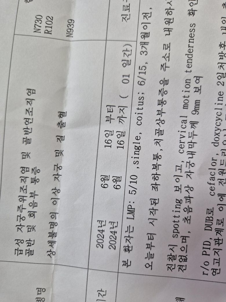 골반염약 중단함.하나먹고