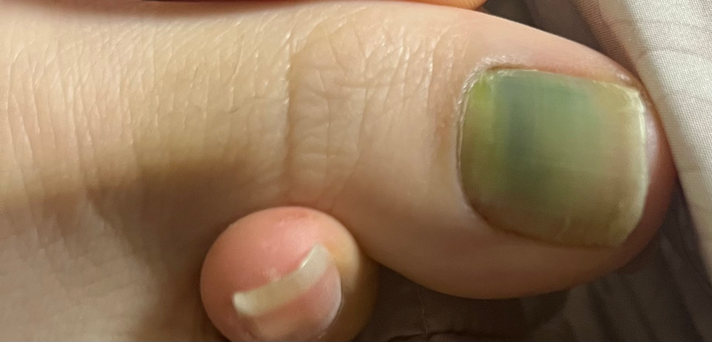 발톱 사진은 녹농균의 감염이 의심됩니다.
