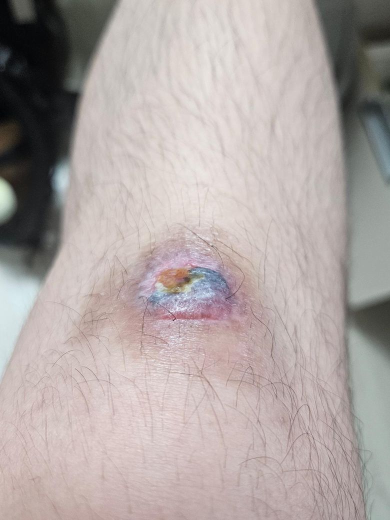사진상으로 많은걸확인할수는없지만 상처가 감염되면서 염증반응이 나타나는걸수있으니 병원에서 검사를받아보시고 적절한치료를받는걸 추천합니다