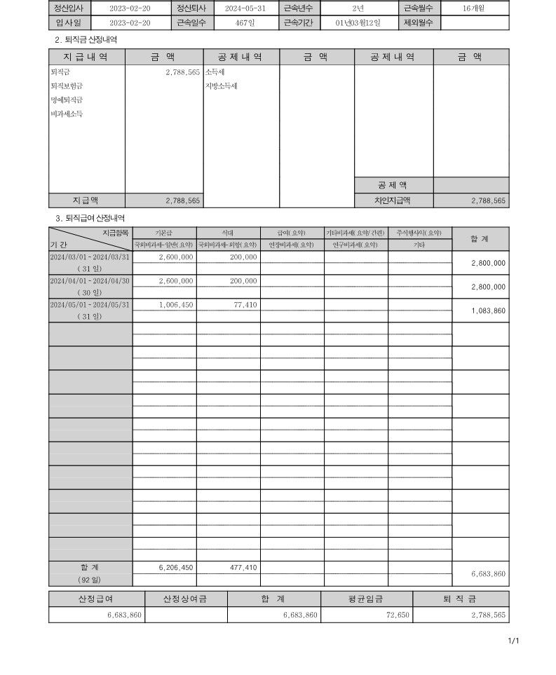얼마전에 퇴사를 해서 퇴직금을 산정내역을 받았습니다.