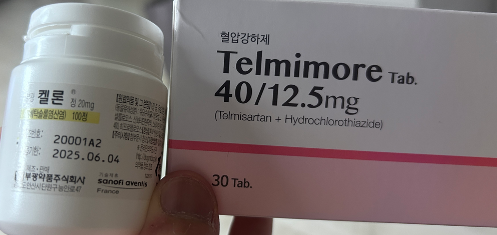 저번주까지 켈론정과 텔미모어정, 그리고 기타 뇌신경 약을 복용하셨습니다. 뇌신경 약은 최근 받은 약과 비슷할것이고 혈압약은 하루에 각각 한알씩 드셨습니다. 그때까지는 혈압이 어느정도 조절이 되었는데, 최근에 대학병원에서 혈압약을 새로 약을 주셨습니다.