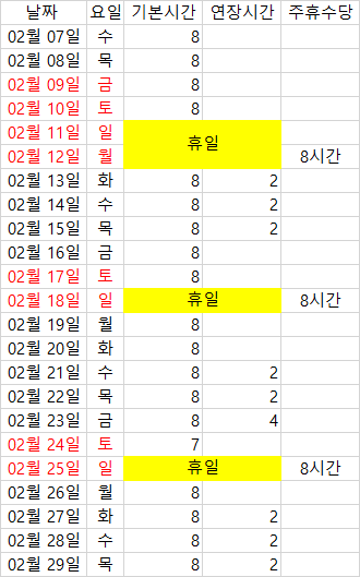첨부한 사진처럼 연장근무 시간도 있습니다.