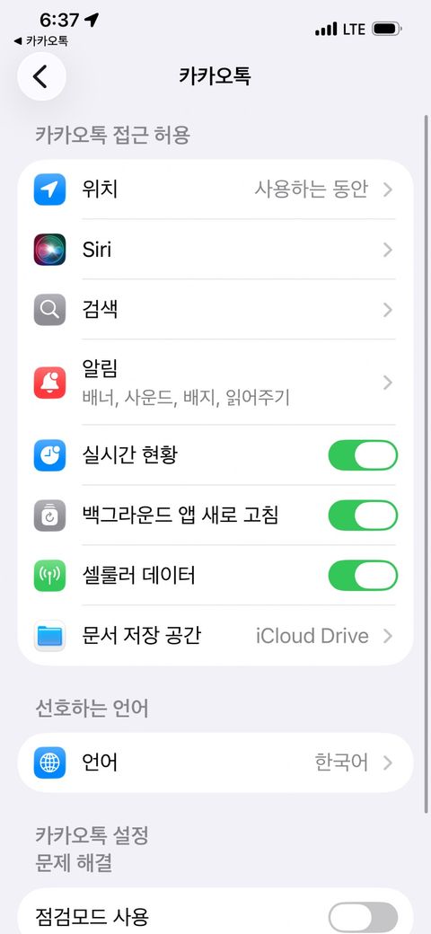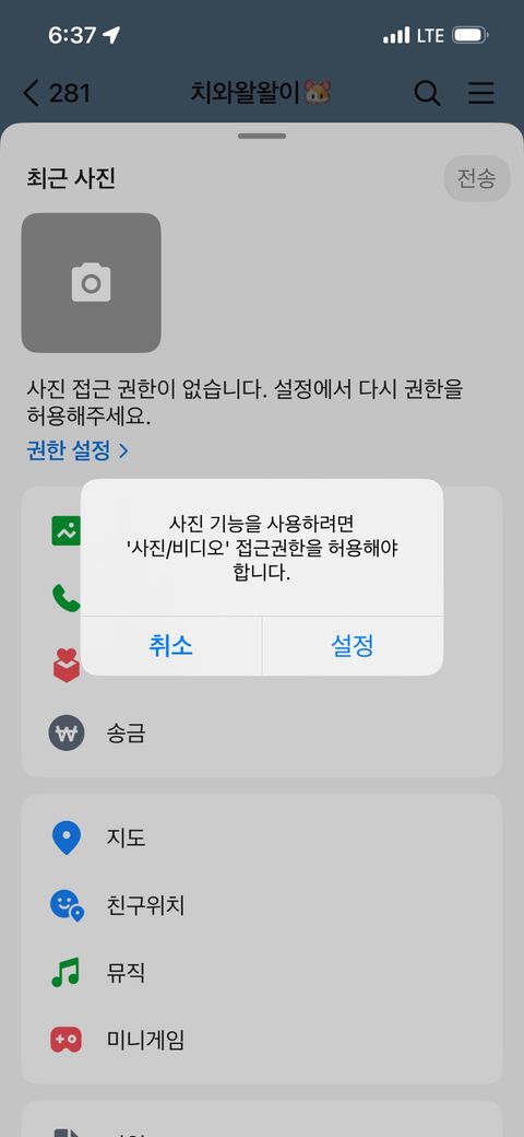 재설정 후 카카오톡을 다시 실행하여 사진을 보내려고 하면 사진에 접근하려고 합니다라는 팝업이 다시 뜹니다