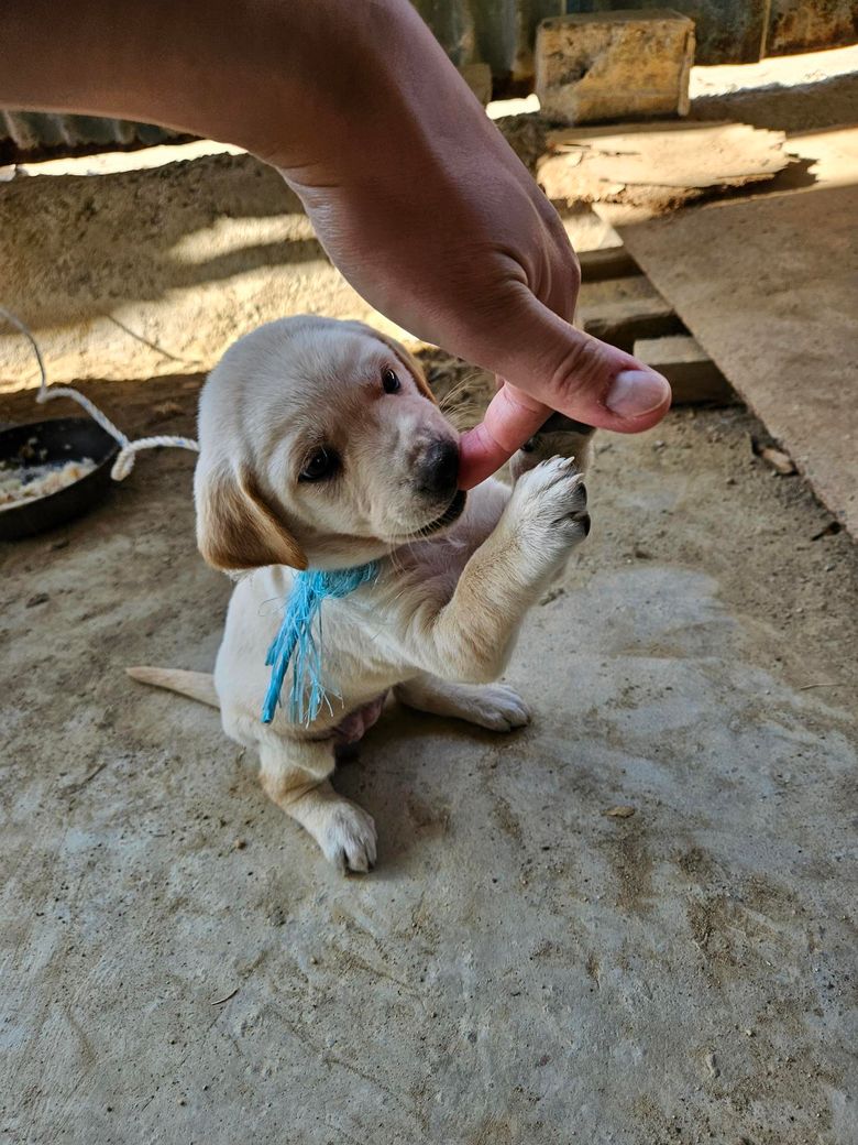 외견으로 볼때는 리트리버 가능성이 높아 보이지만 크기 등을 고려할때 다른 품종 가능성을 배제할 수 없습니다. 유전자 검사를 받아봐야 확실하게 말할 수 있습니다.