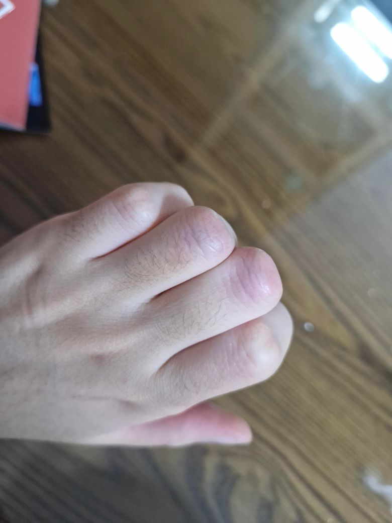 손가락 관절을 세게 부딪혔습니다. 어때 보이시나요?