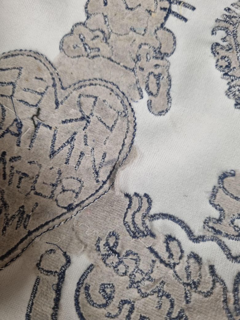 맨투맨 뒷부분에 수 놓은 부분이 종이같은게 덕지덕지 붙어서 왔는데 이게 정상인가요? ;; 빨래하면 너덜너덜 다 떨어지고 세탁기 난리 날거 같은데... ㅡㅡ