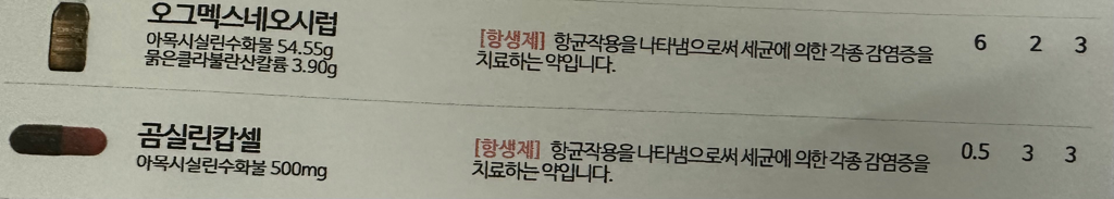 중이염이와서 항생제를 요렇게 처방받았는데