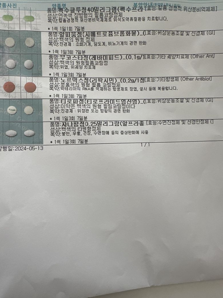 복용 약물인 펙수클루정,알피움,무코스타,노르믹스,티로파정,자나팜 약들은 대변검사에 영향이있지 않기에 검사시 문제가 되지 않습니다.