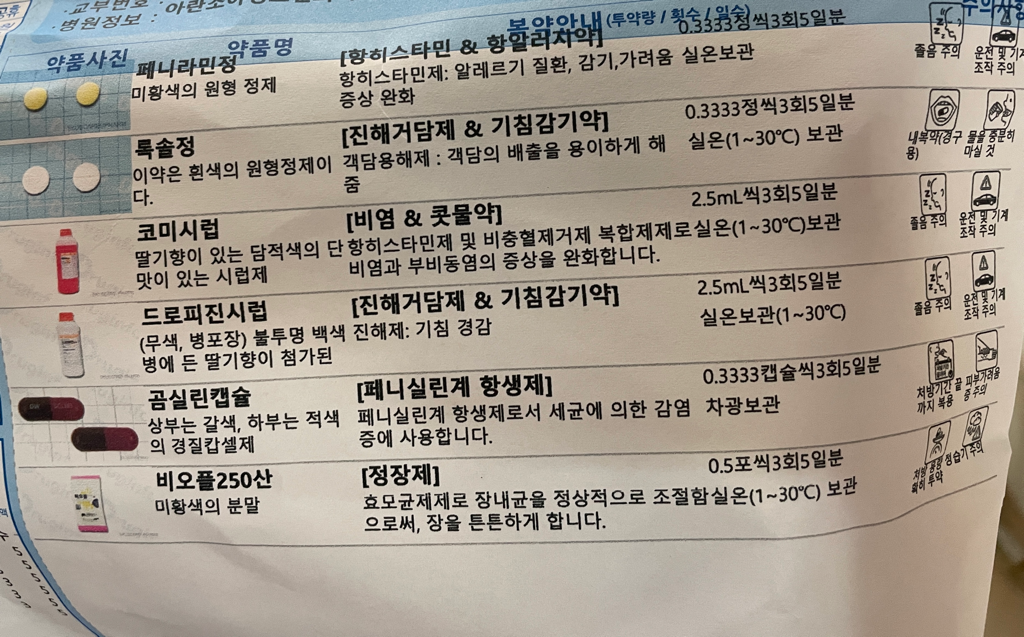 원래 처음에 3일치 해주셨는데 주말이 걸려서 제가 5일분 해달라고 해서 받아왔어요. (근데 항생제 처방인건 약국가서 알았네요;;)