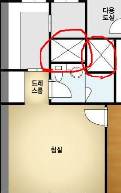 아파트 도면에서 X자 표시되어있는공간 사용 가능할까요??