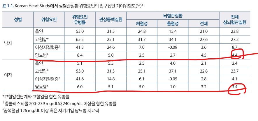 위험요인에 위와 같이 당뇨를 포함하고 있습니다.