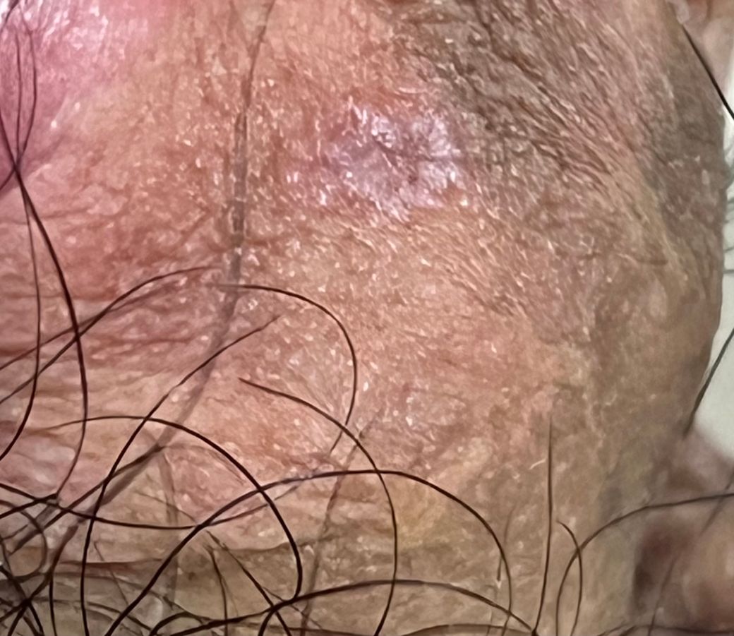 성관계는 없었는데 사진과 같이 귀두 밑 피부가 변했어요. 발견한지는 1-2일 됐는데 얼마 전에 피부가 까져서 아물면서 변한건지 원인을 잘 모르겠습니다.. 딱딱하지는 않고, 통증도 딱히 없습니다.