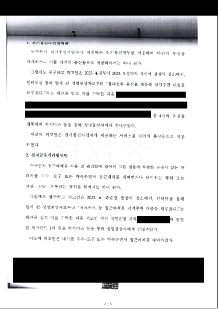 항소이유서의 내용은 피고 본인도 명의도용을 당해 자신이 하지 않은 일로 소송에 휘말린 피해자라고 하며, 명의도용에 관해 수사를 받은 내용을 증거로 제출하였습니다. 증거 내용도 살펴보니 대가를 요구할 목적으로 피고인 명의의 스마트폰 유심과 계좌를 신원불상인과 거래를 한 것으로 보입니다.
