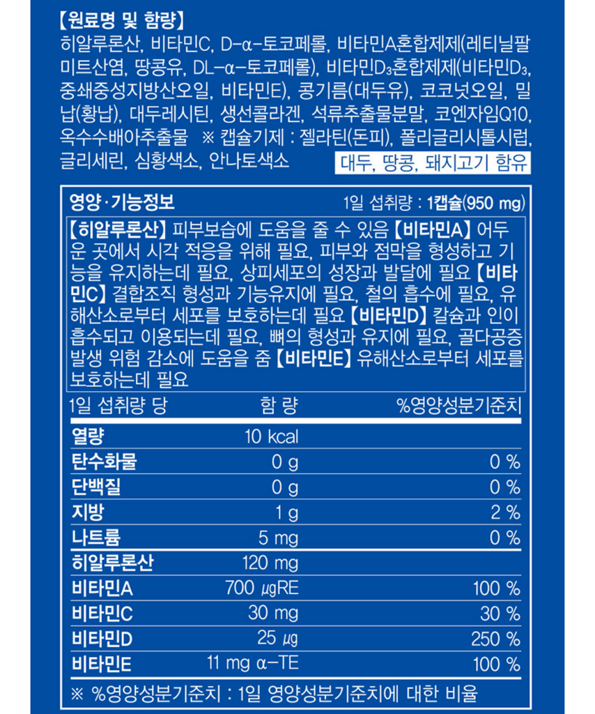 점심 : 히알루론산 / 칼슘, 마그네슘 / 비타민C / 루테인, 종합비타민