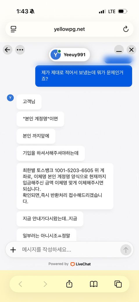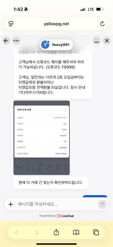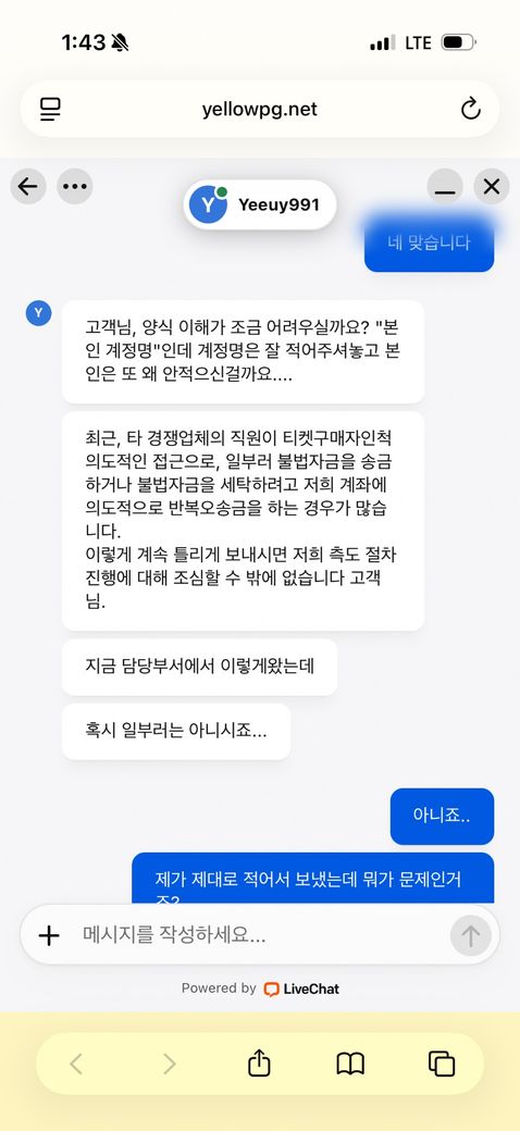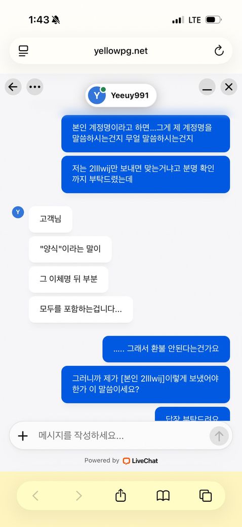 트위터에서 콘서트 티켓 구매를 하려했는데 계정명을 적으랬는데 제가 닉네임으로 잘 못 보냈어요 (155000)