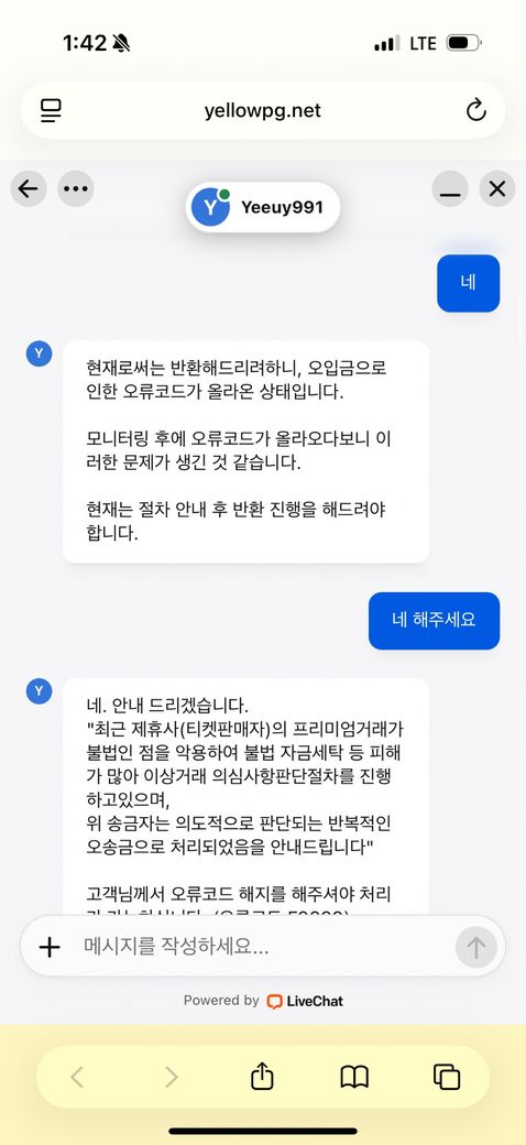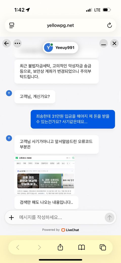 그 다음에 계정명으로 다시 보내면 돌려준대서 다시 보냈는데 제가 @를 포함해서 보냈더니 @를 빼고 보내야했다고 또 잘 못 보냈대요 (155000) 그 다음엔 업체에 직접 연락해야한다해서 연락을 했더니 이렇게 대화가 오갔습니다… 제가 지금까지 보낸 돈을 받으랴면 오류코드를 풀기위해서 제가 지금까지 보낸반큼 31만원을 보내라 해서 보냈는데 양식이 또 틀려서 이제 62만원을 추가로 보내야 62만원을 받을 수 있다네요
