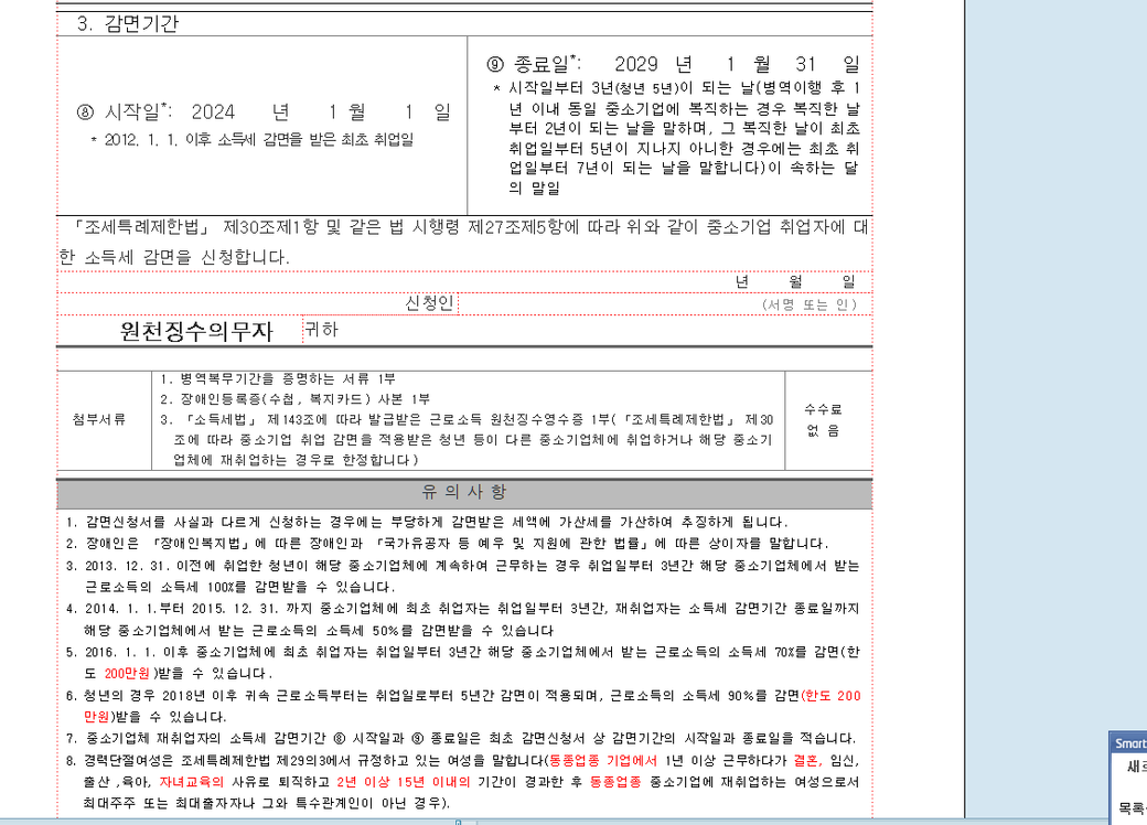 2024.1.1 (입사/시작일) -2029.01.31 감면종료일
