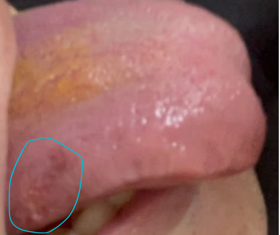 혀옆에 이빨자국도 있고 계속 씹혀서 저렇게 된거라고 구강암 아니라고 하는데