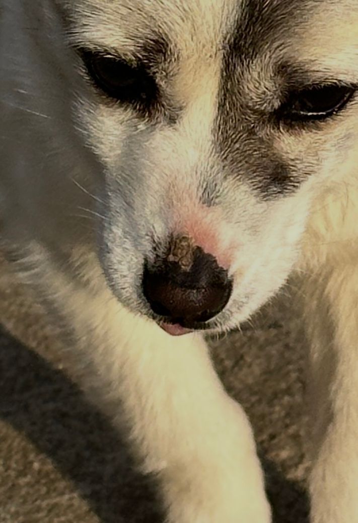강아지 콧등에 딱지가 생겼는데 없어지지 않네요