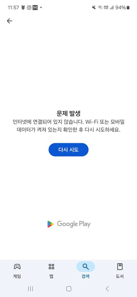 이 사진처럼 앱 하나를 눌렀는데 인터넷 연결이 안되있다고 하더라고요 근데 전 와이파이도 빵빵하고 데이터로도 해봤는데 자꾸 저 오류가 뜹니다 앱 누르기 전 설치 뜨는것도 눌러봐도 똑같이 안되고요 다시 시도 눌러봐도 안되고 핸드폰 껐다 켜도 안되네요 이유가 뭘까요?