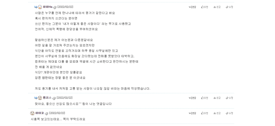 구인구직 사이트인데요. 해당 병원은 시흥에 3글자(센트럴)로 된 병원이 한 곳(저희 병원을 특정하는게 맞습니다.)이며, 댓글로 허위사실을 적어놓아서 구인구직에 피해가 갈 수 있는 상황이구요. 댓글에서 말하는 선임(담당실장)이 저 본인이며 정황상 직접 언급하지 않았지만 모욕적인 표현을 공공적인 공간에 게시해놓았는데, 혹시 이런 상황에서 법적대응이 가능한가요? 사진이 미흡한 부분이 있을 수 있습니다..