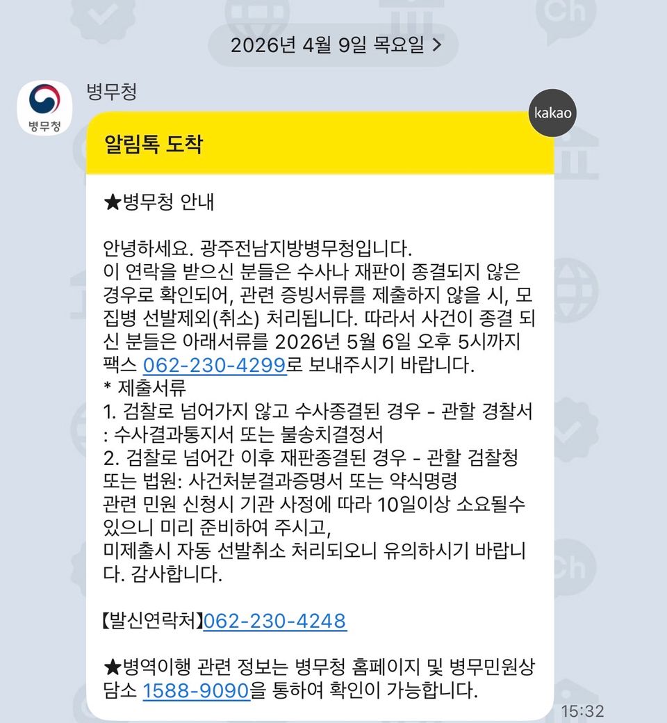 병무청은 수사 또는 재판이 진행 중인 대상자에 대해 모집병 선발을 보류하는데, 현재 질문자님의 사건이 종결되었음에도 병무청 시스템에 아직 반영되지 않은 상태입니다. 사법포털에서 결정종결로 확인된다면 실제 사건은 끝난 것이므로, 이는 행정적 정보 미반영 문제일 뿐 입영 자체가 불가능한 상황이 아닙니다.