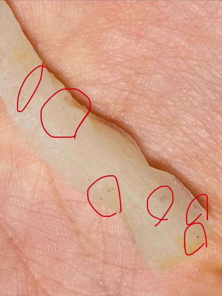 설곤약 먹다가 이물질이 소스가 묻혀져잇는 상태로도 보여서 씻어내고 찍엇습니다…이게 뭘까요??이물질이겟죠…????????