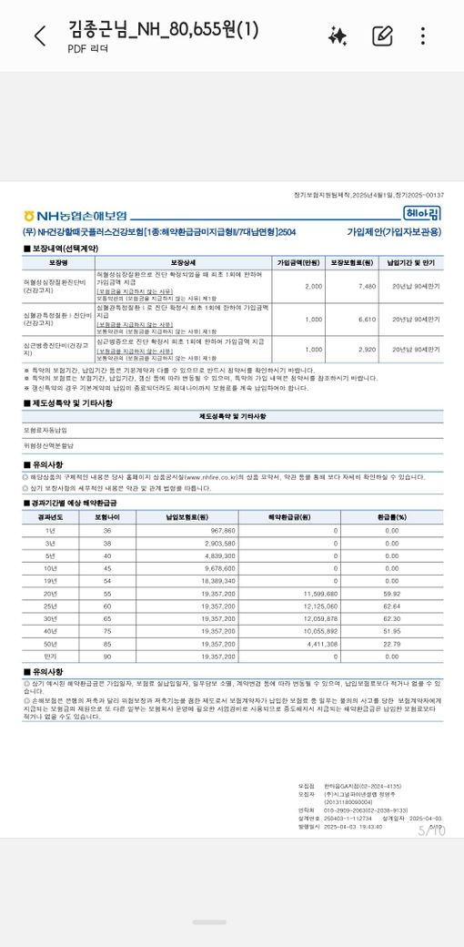 것이 좋을 것 같습니다. 물론 가입자님의 건강상태 등 단순하게 자료만을 보고 말씀드리기에는