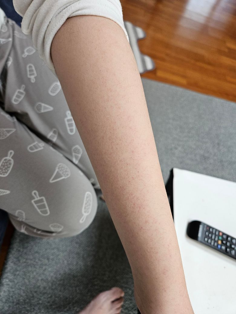 질문자님께서 첨부해주신 사진에 관찰되는 작고 붉은 반점은 대개 열이 오르며 동반될 수 있는 증상이나, 약물에 대한 알레르기 반응이나 바이러스 감염증에 대한 면역반응으로도 나타날 수 있겠습니다. 이중에서 알레르기 반응인 경우 급격하게 진행하며 입술이나 목의 부어오름, 호흡곤란과 같은 위험한 증상까지 유발할 수 있으므로 피부의 발진이 빠르게 늘어나는 모습을 보인다면 즉시 병원을 방문하시기 바랍니다.