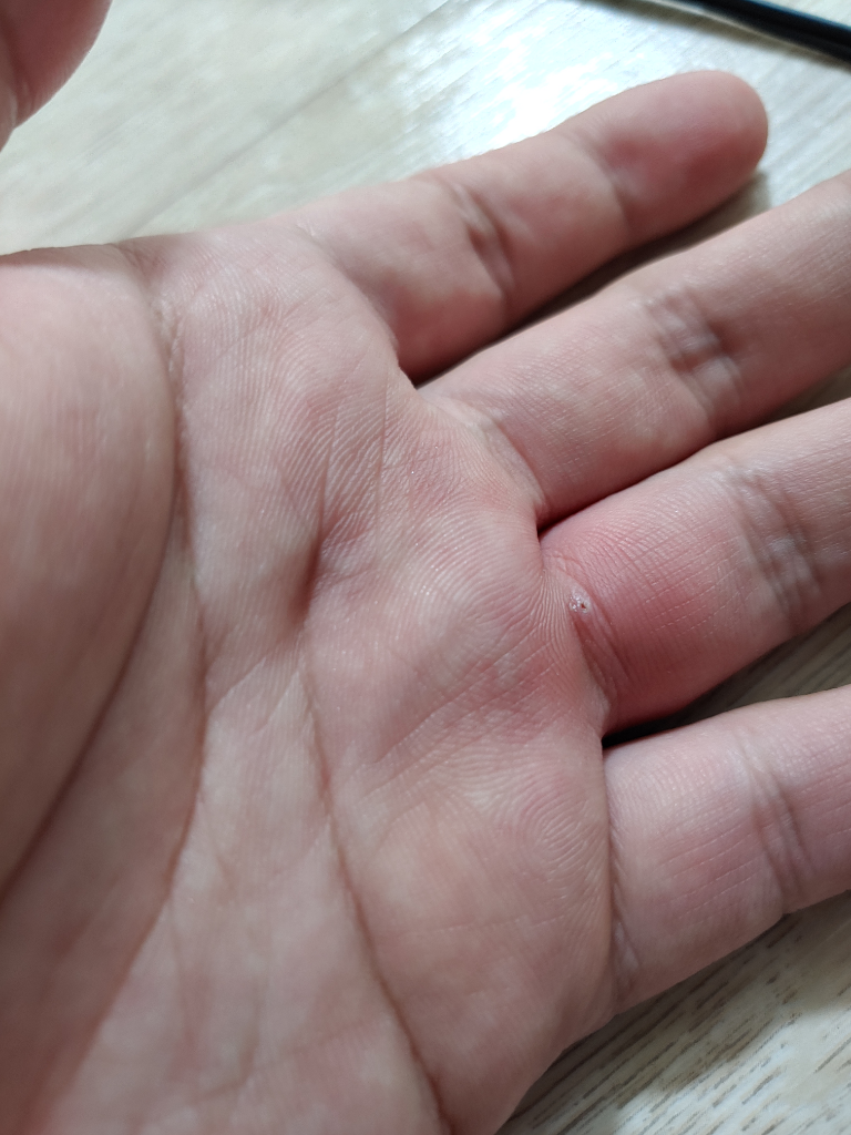 가시같은것에 박혀서 문제가 생긴것으로 보이는데요?